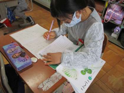 今日は,学習計画を立てて,心にのこったことを書きました。気持ちを表す言葉を書いた【ことばのたからばこ】をもとに,いつもとは違う表現をしてみようと取り組みました。