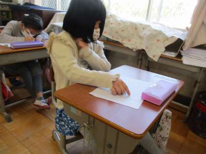 週初めの漢字小テストです。以前に比べてしっかりと書けるようになってきました。見直しも,自分が書いた字を指さしながら確認できる姿が増えてきています。