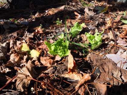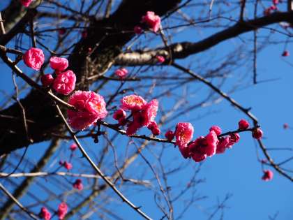 紅梅そして春光に輝く松の葉 そして ふきのとうが咲き始めていました。