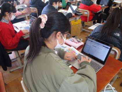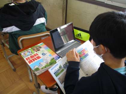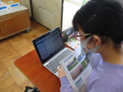 持続可能な社会とはどのような社会なのかを調べている様子です。
