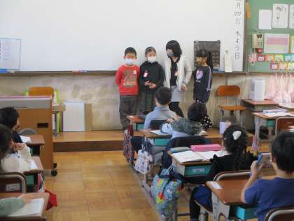 今日のなぞなぞは,「まじめなけんは?」「おにが食べるものは?」「1から10までの数の中にいる虫は?」「食べられるフライパンは?」でした。楽しい時間でした。