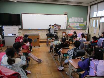 お笑い係の発表です。表情がおもしろくてみんなで大笑いです。