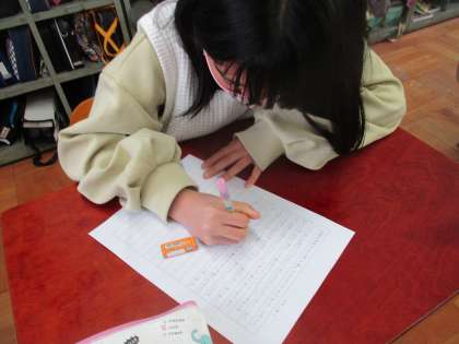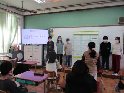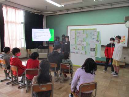 6年生による「戦争と平和」についての発表をグループに分かれて聞きました。同じテーマでも,グループごとに内容や発表の仕方に工夫が見られました。戦争の恐ろしさ,平和の大切さなどを知り,来年度の修学旅行がより楽しみになったようでした。また,相手意識をもった発表の仕方も学ぶところが大きかったようです。振り返りで書いたことを,ぜひ生かしてほしいと思います。