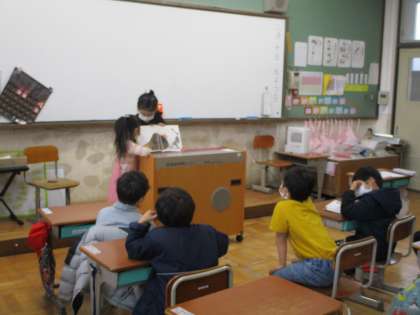 今日は,本係が読み聞かせをしてくれました。そして,あそび係がみんな遊びのルールを説明してくれました。