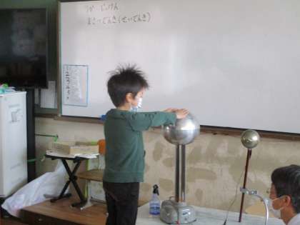 体に静電気がたまり,髪の毛が大変なことになりました。