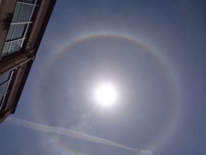 お日様の周りに丸く虹が出ています。見つけた人はいますか?