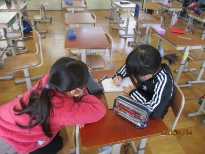 教室では,好きなイラストを描いて楽しんでいる様子もありました。