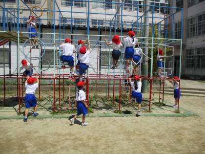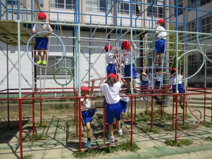 「ならびっこ」をした後,遊具遊びを少ししました。お友だちや自分の体を守って楽しく遊ぶための約束をたくさん知りました。安全に気をつけて遊べるようになるといいな。また,明日晴れていたら,遊具遊びをします。休み時間にも早く遊びたいですね!