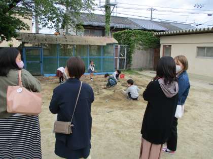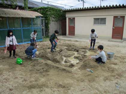 授業参観終了後の運動場の隅の造形砂場からにぎやかな子ども達の歓声が・・・