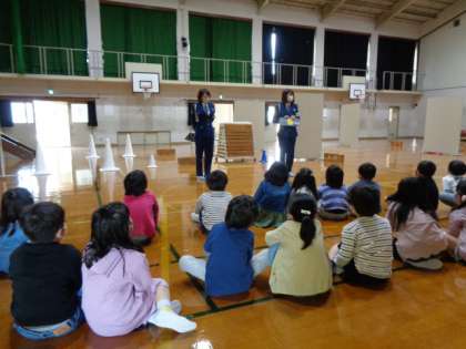 中京署からお二人のおまわりさんに来ていただき,1年生に道路を歩く時・渡る時に気をつけなければならないことを教えていただきました。大切な言葉は憶えられたでしょうか?「止まる」「よく見る」「よく聞く」の3つです。