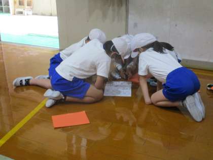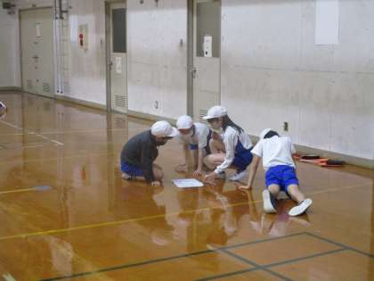 班で自分達の「柔軟性」や「巧みな動き」を高めるための体操を例や実体験を参考に考えています。