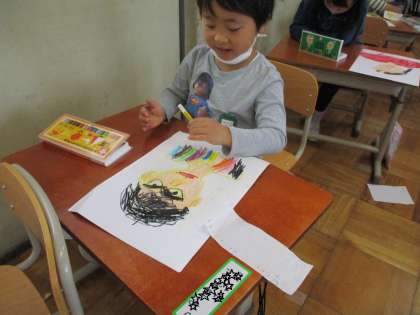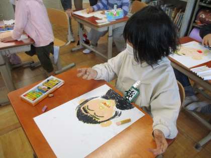 自分の顔を描きました。色の順番に聞をつけて描いています。