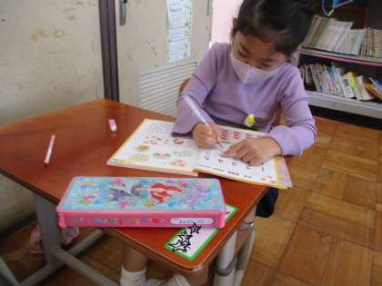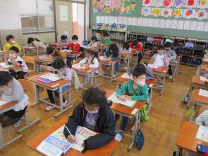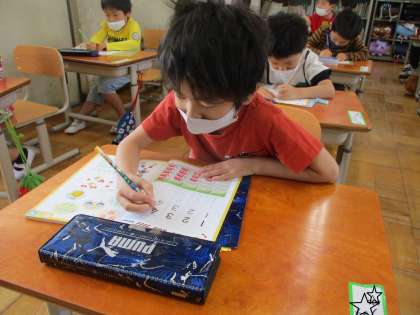 1〜5の数字の書き方を学習しました。空書きしたり,お手本をなぞったりして何度も練習をしました。