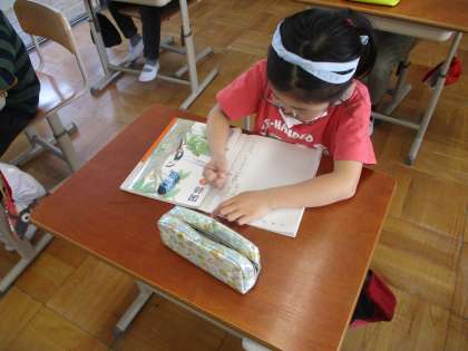 上手に音読するにはどうしたらいいか考えている様子です。