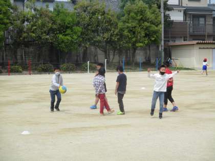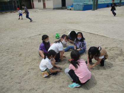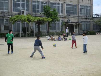 ボールで遊んだり,砂場で遊んだりしている様子です。