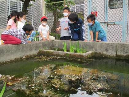 学校のビオトープでヤゴが皮を脱いで成虫になるところを子どもたちが見つけて,教えてくれました。