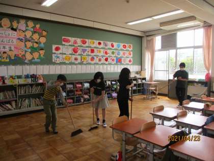掃除のお手伝いも6年生のお仕事です。今日は,眼科検診のため6年生だけでしたが,来週は1年生に教えながらする予定です。月曜日からの担当の子たちは,まだかな〜と楽しみな様子でした。