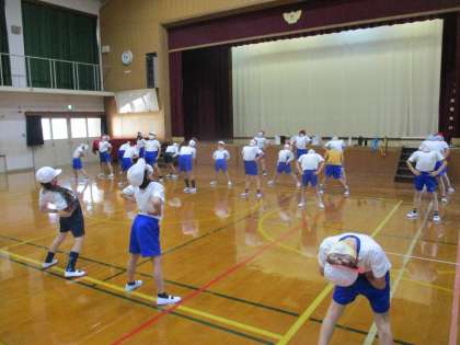 準備体操をしている様子です。