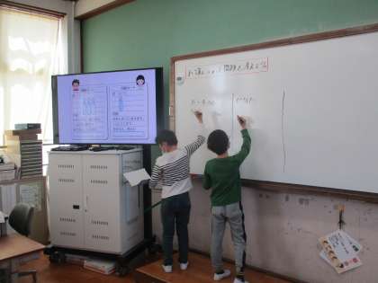 自分の考えを伝えたり,説明したりしている様子です。