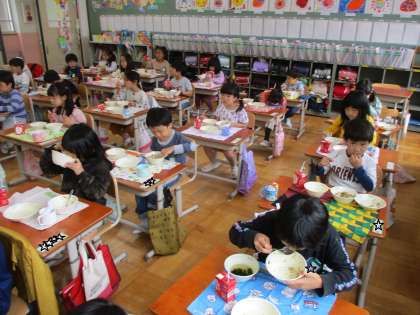 今日の給食は,ビビンバでした。ごはんに混ぜておいしくいただきました。