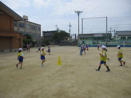バトンわたしの練習をしている様子です。