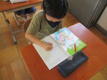 自分の考えをノートにかいたり,伝えたりしている様子です。