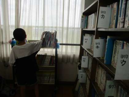 図書係さんは,クラスで借りる本を探してくれていました。