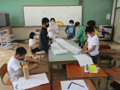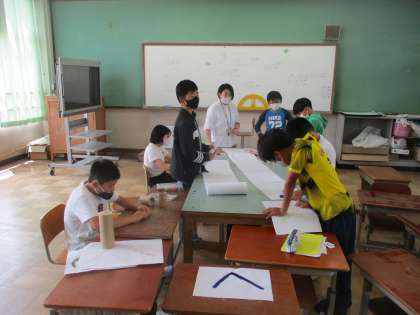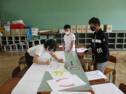 火曜の児童朝会に向けて給食を食べ終わった人から集合して作成しています。自分達で時間を見つけて取り組めたことが良かったです。