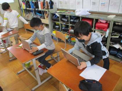 タブレットを使って学習している様子です。