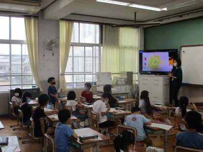 みんなの前で観察して気づいたことを発表している様子です。