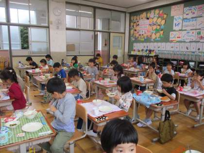 今日の給食はパン給食です。型チーズがつきました。型にはいろいろあって,写真は,かに,飛行機,コアラです。その他サッカーボールやパンダなどたくさんの型があります。どの型になるのか,どこからかじるのかもお楽しみです。
