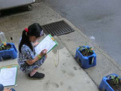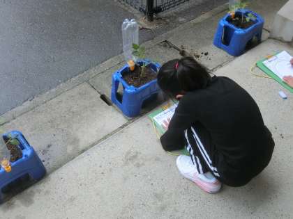ミニトマトの観察を行いました。葉の形や手触りなどを確かめながら観察しました。