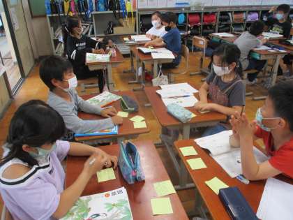 友だちに伝えたり,質問したりしている様子です。