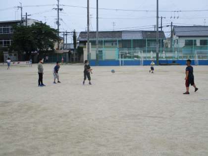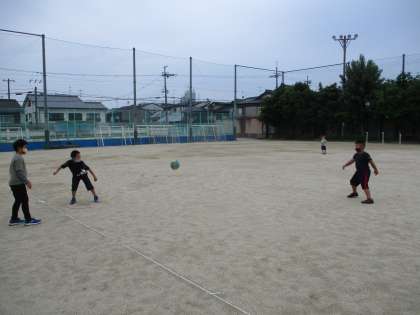 子どもたちがグラウンドで遊んでいる様子です。