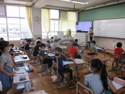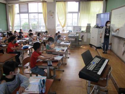 曲を聞いて感じたこと,気づいたことを交流している様子です。