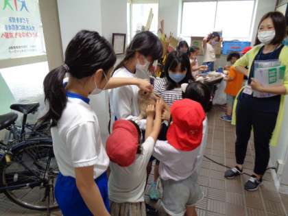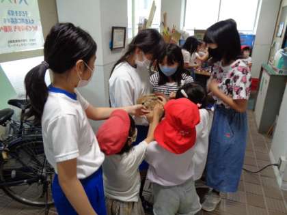 休み時間の生き物委員会の皆さんが「モモちゃん」のお世話をしてくれています。