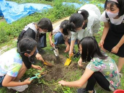 じゃがいもの葉を使った実験が終わったので,みんなで収穫しました。大きいものから小さいものまでたくさん穫れました。子どもたちは「どうやって食べようかな〜♪」と嬉しそうに持って帰っていました。
