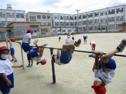 今日は,いろいろな技に挑戦してもらいました。「ふとんほし」「ちきゅうまわり」「あしぬきまわり」「こうもり」です。お茶休憩のあとも自分から進んで練習をしていました。