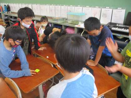 折り紙を折ったり,自分たちで考えたゲームで遊んだりしている様子です。