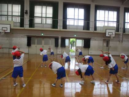 雨降りだったので,体育館でフォークダンスをしました。コロンビアのフォークダンスの「タタロチカ」です。楽しく踊れました。