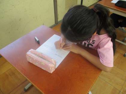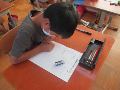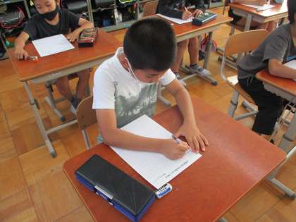 校区のお気に入りの場所をワークシートに書いている様子です。