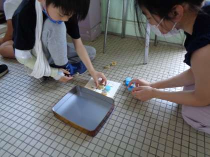暑い日差しの中,校舎内の日陰の中,ちょっぴりゲームを楽しみました。