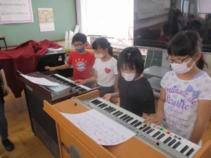 木琴やオルガンを使って学習している様子です。
