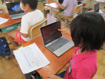 初めてタブレットの電源を入れて,IDやパスワードを入れました。電源の切り方も学習しました。次の学習では,カメラを使ってみます。
