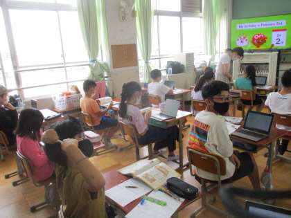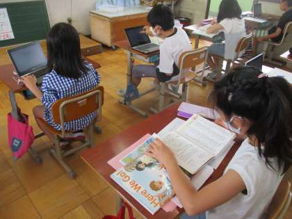 前回と同じ,教科書,辞典,パソコンを活用して取り組んでいます。