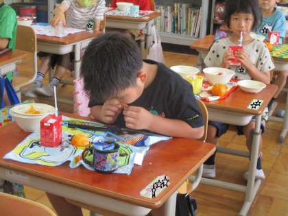 黙食なのに,つい,うっかり「冷たい!!」と言ってしまう笑顔の子どもたちでした。