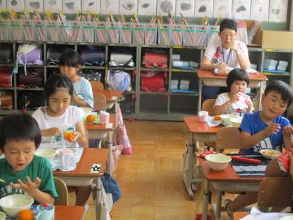 今日の給食にみかんがでました。カチカチに凍っていて,みかんの周りに氷が張るほどに冷たい冷凍みかんです。ごはんやおかずを食べ終わるころには,少し解けていました。それでもとっても冷たくて,指先が冷たくなるのを我慢しながら皮をむき,口に入れると唇がすぼむほどに冷たいみかんを楽しんで食べていました。
