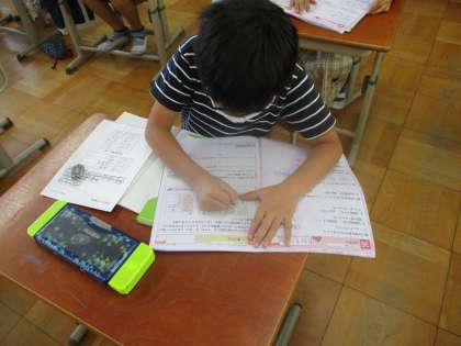 自分の考えを伝えたり,練習問題に取り組んだりしている様子です。