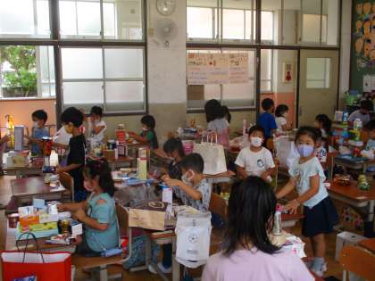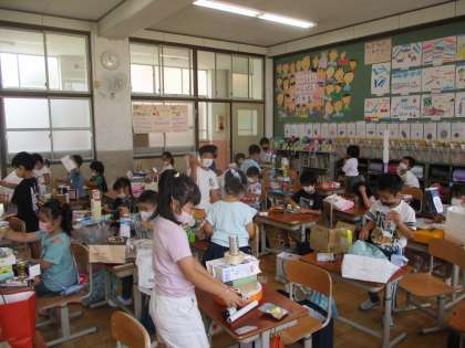 箱などを使って工作をしました。箱を組み合わせたらどんなものに見えるかな?箱の色や模様は何に見えるかな?箱の特徴を生かして何に見えるかをはじめに考えました。