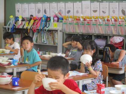 今日の給食には,万願寺とうがらしやみょうがが出ました。早速『まほうのたべかた』を実践しながらいただきました。